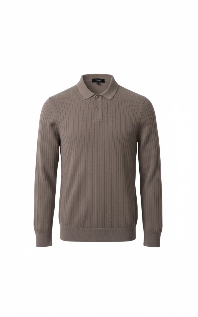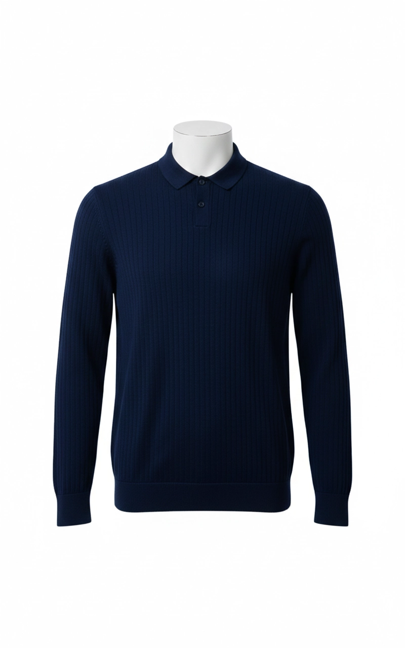 Solid colors play it safe. Bold patterns demand attention. The Needle Drop Knitted Long Sleeve Polo Sweater occupies the space between—textured enough to hold visual interest, subtle enough to pair with everything. Run your hand across the surface and you’ll feel the vertical ridges that catch light differently with every movement.