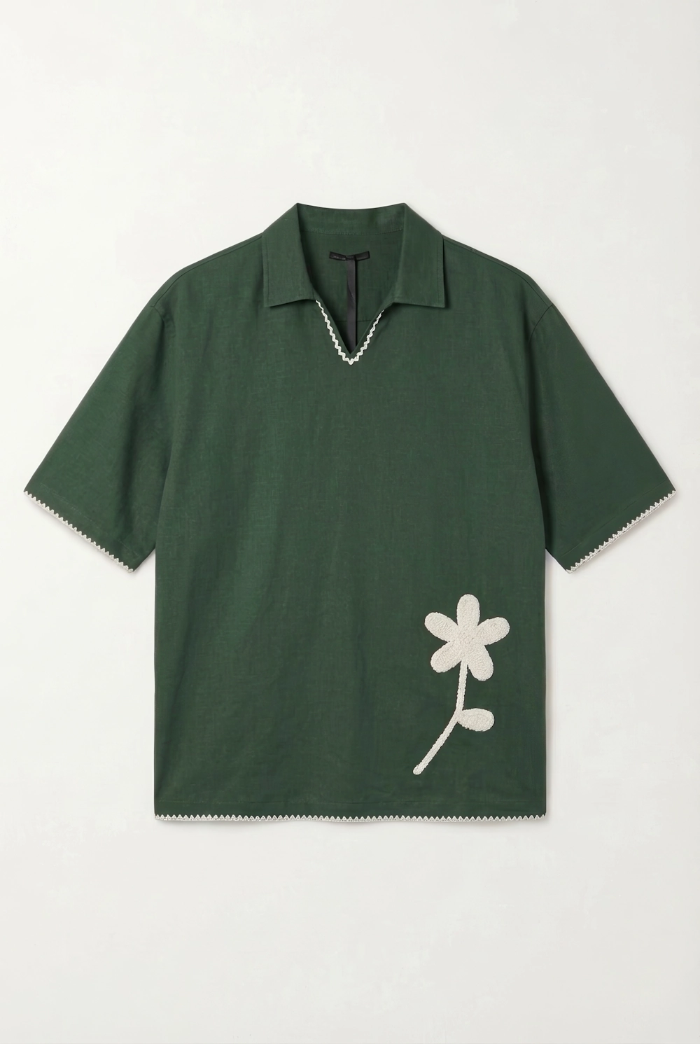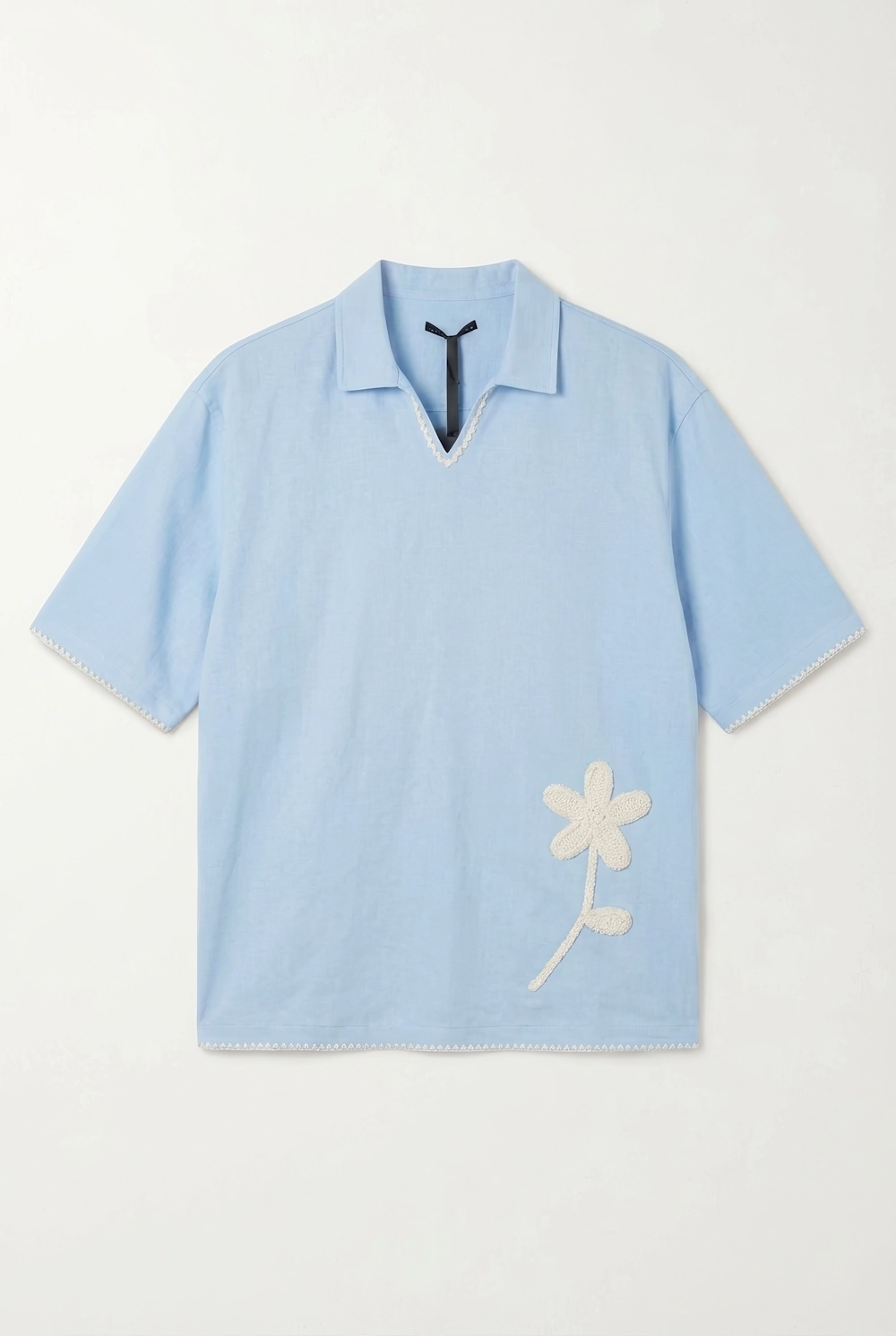 Open Collar Short-Sleeve Shirt with Crochet Applique & Whipstitch Hem |