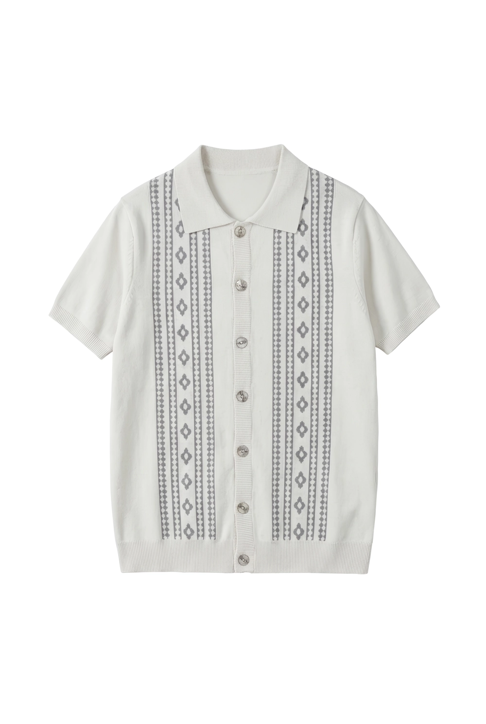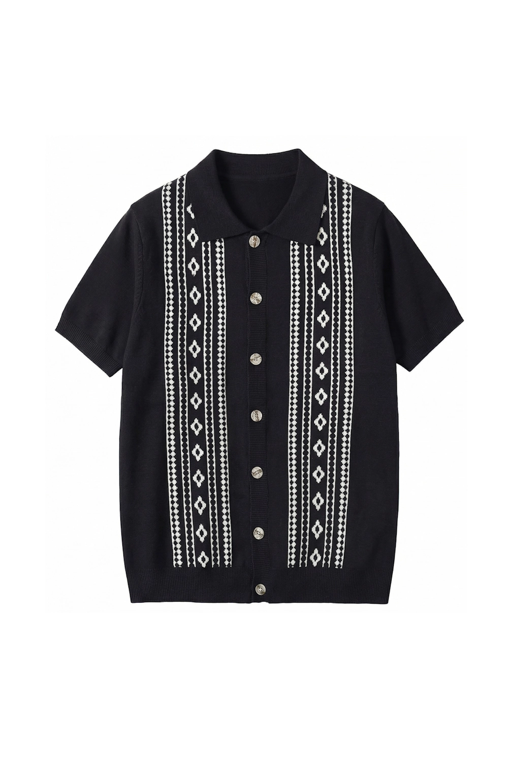 Button-Through Knit Shirt with Geometric Jacquard |