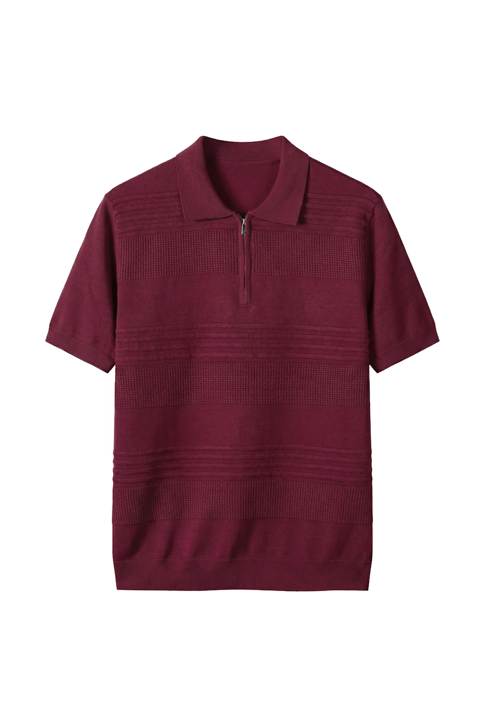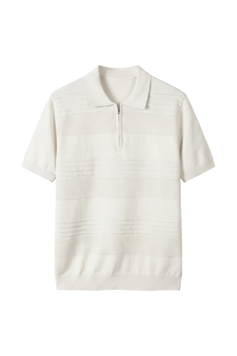 Quarter-Zip Knit Polo with Horizontal Stripe Texture |